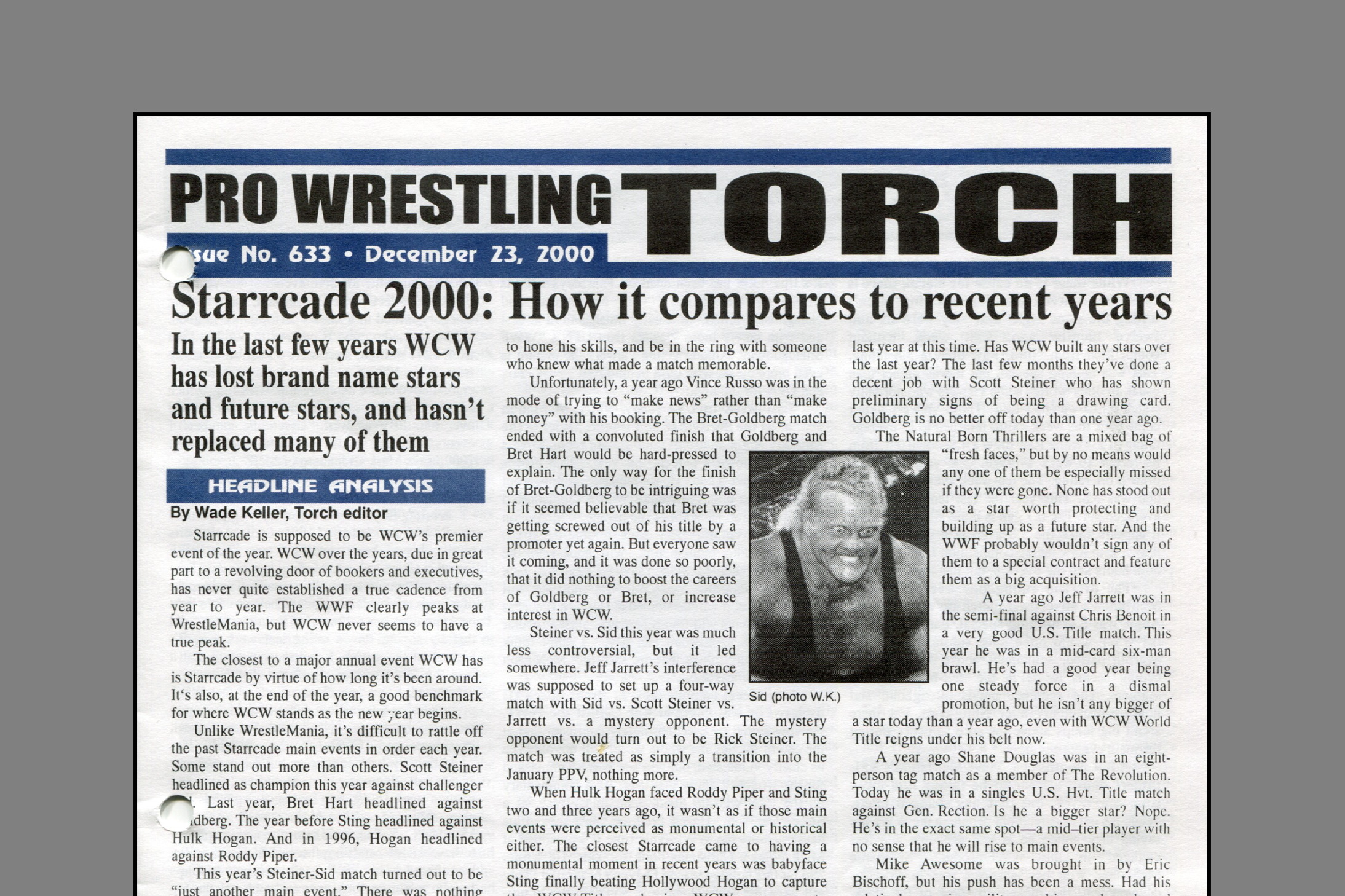 VIP 2000 BACK ISSUE – Pro Wrestling Torch #633 (December 23, 2000): Cover Story compares Starrcade 2000 to previous Starrcades, detailed coverage of Starrcade 2000, Keller’s End Notes on Vince McMahon’s swerve, more