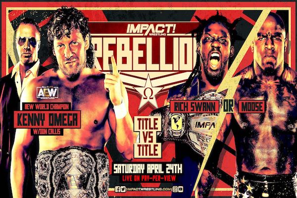 This weekend on Impact’s Sacrifice show, Rich Swann and Moose will unify the Impact World Championship and the TNA World Championship. Omega will face the winner of that match at Rebellion and put his AEW World Championship on the line in a title vs. title match.