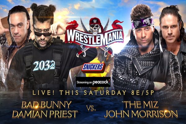 Damian Priest & Bad Bunny vs. The Miz & John Morrison is scheduled for the first night of WrestleMania on April 10. WrestleMania 37 will stream live on Peacock from Raymond James Stadium in Tampa, Florida.