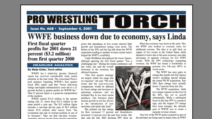 VIP 2001 BACK ISSUE – Pro Wrestling Torch #668 (September 4, 2001): Keller Evaluations Biggest Winners and Losers of WCW since WWF buyout, Linda McMahon addresses declines in WWF business, Keller’s Angle-Shane DVD review