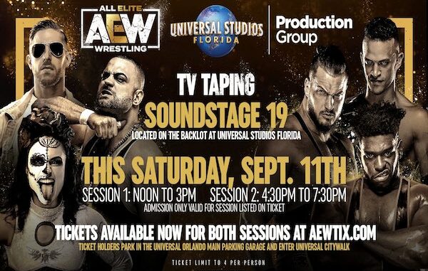 AEW will begin taping television at Universal Studios on September 11. There will be a two sessions. One from noon until 3 and the other from 4:30 to 7:30. Tickets for both sessions are available now at AEWTix.com. The tapings will take place at Soundstage 19.