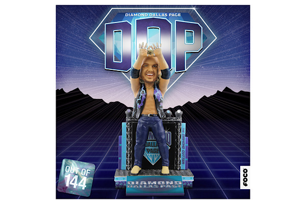 The bobblehead features DDP in his signature pose with his hands in the position of a diamond. He is featured in his signature outfit on a thematic base that features his name displayed on the front.