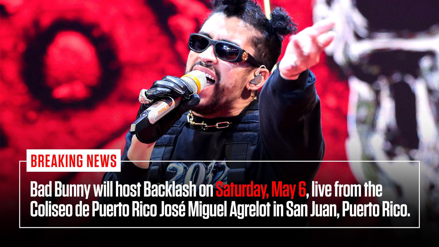 STAMFORD, Conn., March 8, 2023 – WWE (NYSE: WWE) today announced that the two-time GRAMMY® award-winning and global recording artist Bad Bunny will host Backlash on Saturday, May 6, live from the Coliseo de Puerto Rico José Miguel Agrelot in San Juan, Puerto Rico.