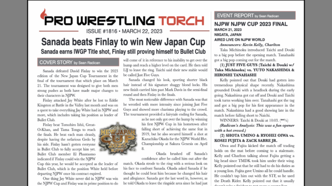 SUMMARY: This week’s PWTorch Newsletter features Sean Radican’s cover story on New Japan Cup… Radican’s detailed report on entire New Japan Cup Final night… Greg Parks feature column looks at Dwayne Johnson’s XFL so far… Keller’s TV reports, moreKeller’s TV reports on AEW Dynamite, WWE Smackdown, and WWE Raw… Torch Newswlre… More…