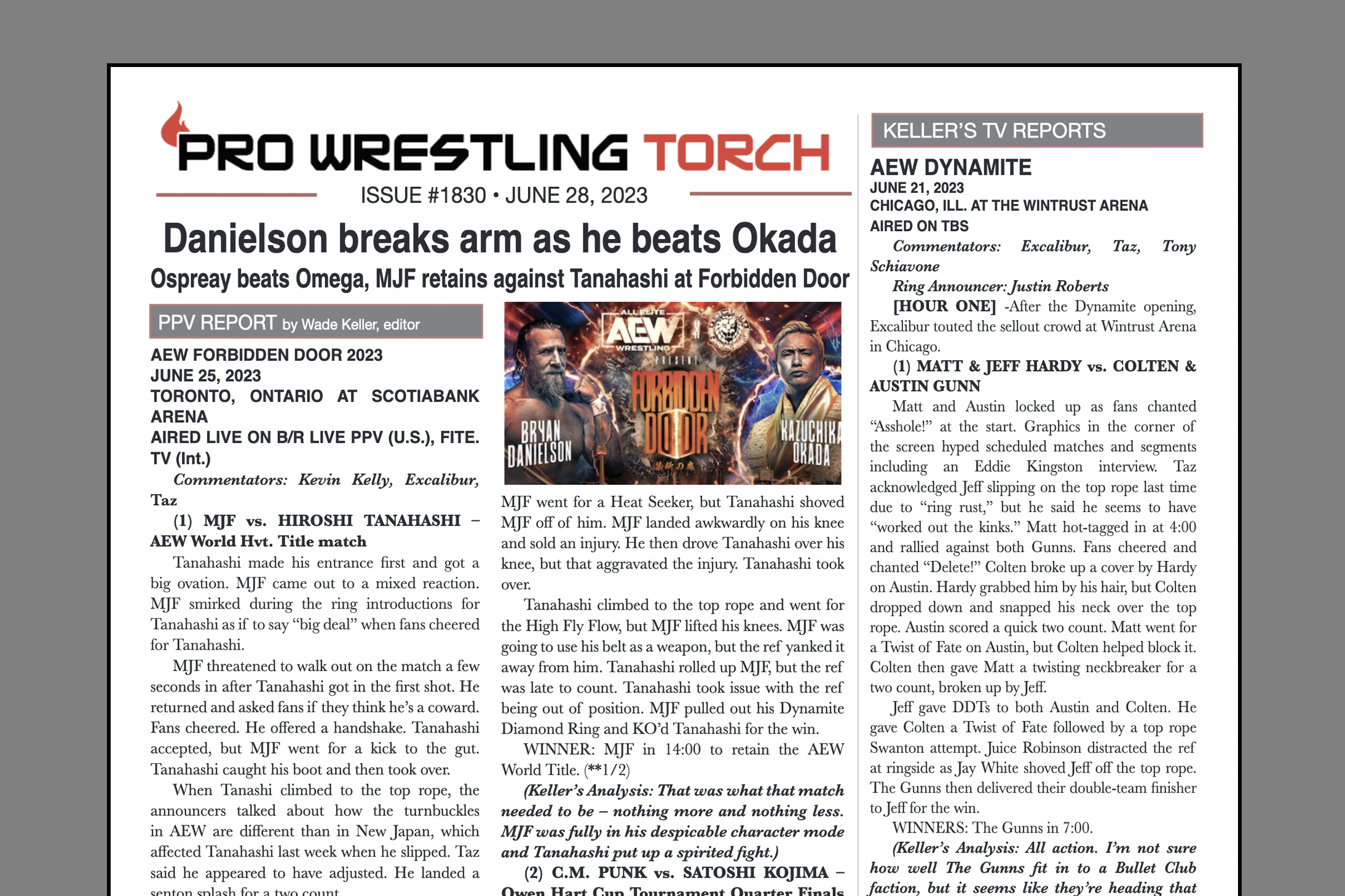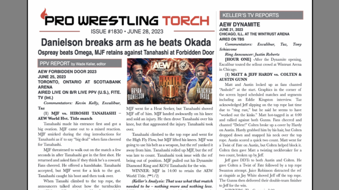 SUMMARY: This week’s PWTorch Newsletter features Wade Keller’s PPV Report on AEW Forbidden Door… Forbidden Door PPV Roundtable Reviews (an expanded digital-exclusive edition)… Greg Parks reviews Steve Keirn’s autobiography… Keller’s TV Reports on Smackdown, Raw, Dynamite, and Collision…
