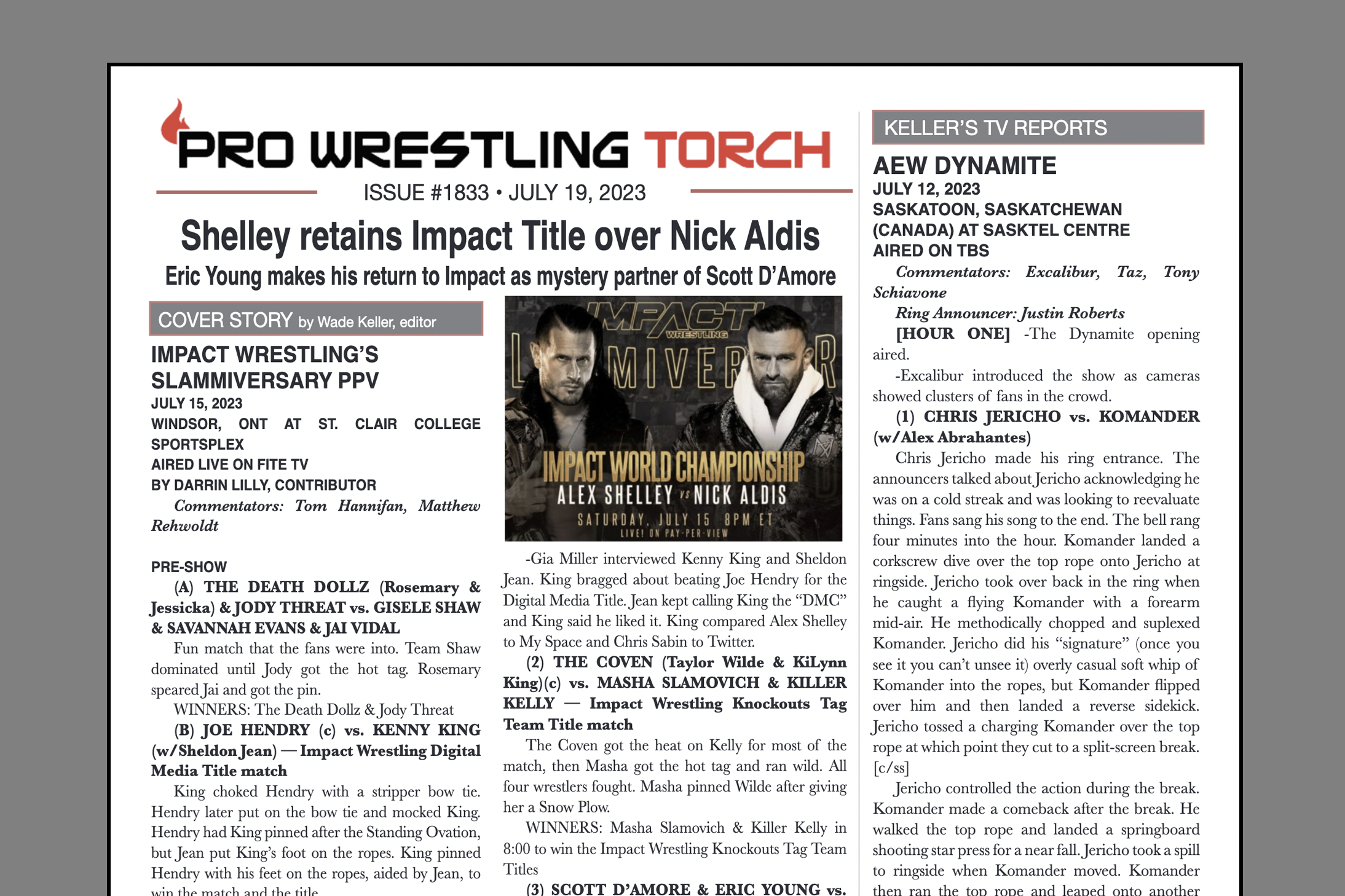 SUMMARY: This week’s PWTorch Newsletter features Darrin Lilly’s Impact Wrestling Slammiversary PPV report… Greg Parks’s feature column looks at whether Bullet Club has overstayed its value as a faction… Wade Keller’s TV reports on Raw, Smackdown, Dynamite, and Collision… Torch Newswire including an overview of state of pro wrestling ratings and new match regulations in AEW…