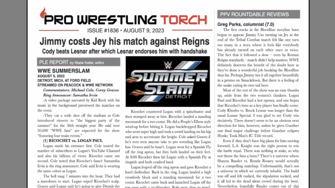 SUMMARY: This week’s PWTorch Newsletter features Wade Keller’s WWE Summerslam report… Summerslam PPV Roundtable Reviews… Greg Parks feature column on what’s next after Summerslam for WWE’s major four singles titles… Keller’s TV reports… More…