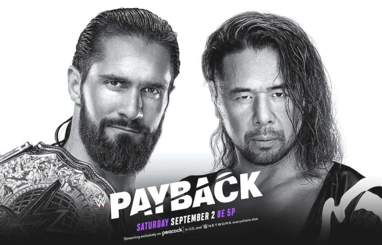-Seth Rollins entered first, sporting black and gold gear and an oversized gold jacket. He slapped hands with fans as he weaved back and forth down the entrance way. The crowd serenaded him the whole way. Rollins stood frozen in the center of the ring, bathed in a spotlight as the crowd sang through the silence. He took a bow to close it out. Shinsuke Nakamura spoke in Japanese over series of animated comic clips prophesying Seth’s downfall. It bled into his signature entrance. The crowd sang him to the ring, too. Michael Cole noted that one of Nakamura’s great inspirations, The Great Muta, is in attendance. He followed that up by mentioning that this is Shinsuke’s first WWE Pay-Per-View/Premium Live Event main event.