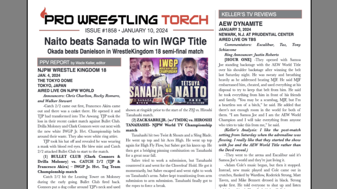 SUMMARY: This week’s PWTorch Newsletter features Sean Radican’s New Japan WrestleKingdom report and star ratings… Greg Parks reviews “The Iron Claw” movie on the Von Erichs… Wade Keller’s TV reports… More…