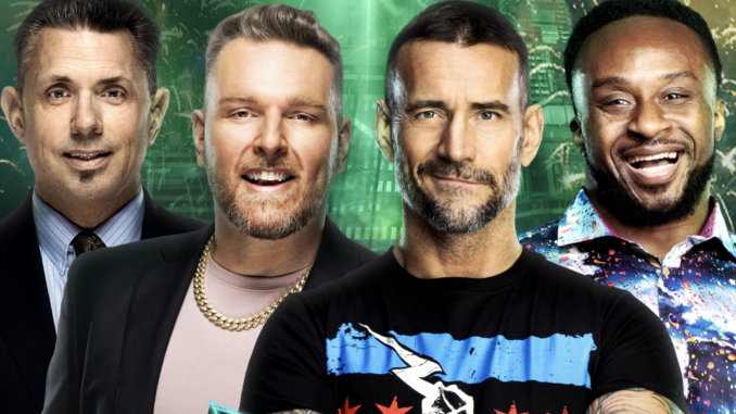 -They showed the exterior of T-Mobile Arena and then the gathered audience in the arena. Cole introduced Pat McAfee. McAfee introduced Big E and C.M. Punk. McAfee said decisions will be made tonight that will be “talked about until the end of time.” Cole called Big E one of the most entertaining people on the planet. Big E said he’s just there to be sure Punk doesn’t get fined. “We love you, but you have a reputation and you fly off at the handle,” he said. Punk smiled and bowed to Big E. A “C.M. Punk!” chant broke out. Cole listed his accolades and said he’s most importantly the husband of A.J. Lee.