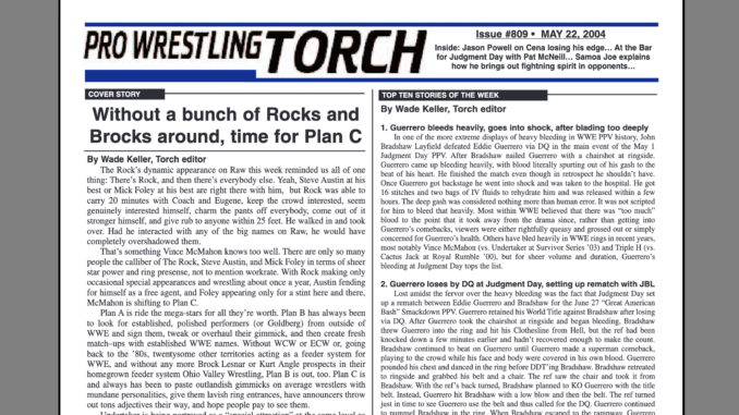 VIP 2004 BACK ISSUE – Pro Wrestling Torch #809 (May 22, 2004): Details on Eddie Guerrero’s blade job, Cover Story on directional shift in WWE’s booking, Judgment Day coverage, more