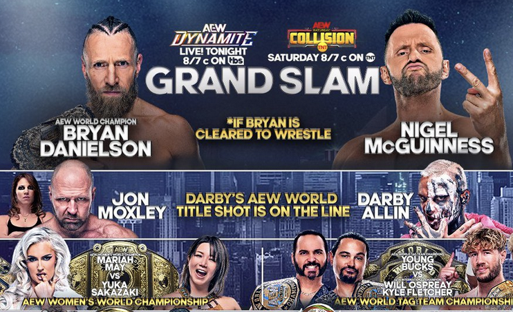 It’s Grand Slam week. In spite of the weird build, AEW has laid out a strong card over Dynamite and Collision. The first chapter in a war for the soul of AEW, the best chance to change the direction of the tag division, and the final chapter in a legendary rivalry all take center stage tonight.
