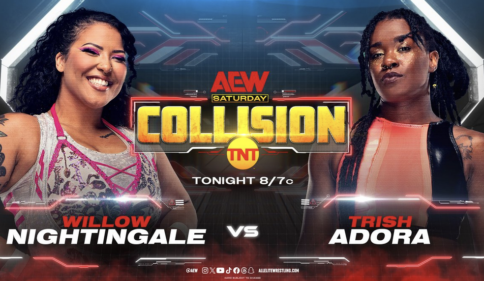 Saturday night’s (000) episode of AEW Collision on TNT averaged 269,000 viewers, compared to 436,000 the prior week and the 347,000 the week before that. The current ten-week rolling average is 317,300. Three weeks ago it drew 268,000 and five weeks ago it drew 289,000, so this is around the “low water mark” for Collision in its usual timeslot when facing tough competition.