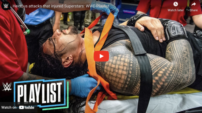 After Kevin Owens’ viscous use of a banned piledriver against Randy Orton resulting in Orton being stretchered out of the arena, WWE has added another video to their WWE Playlist series on their YouTube Channel looking at some of the worst attacks that caused an injury angle to happen.