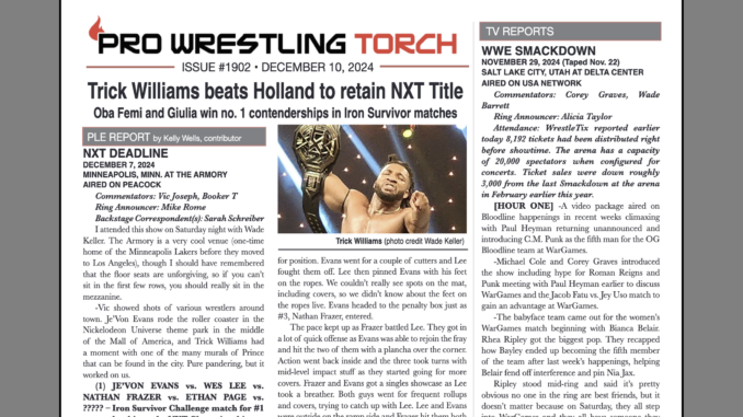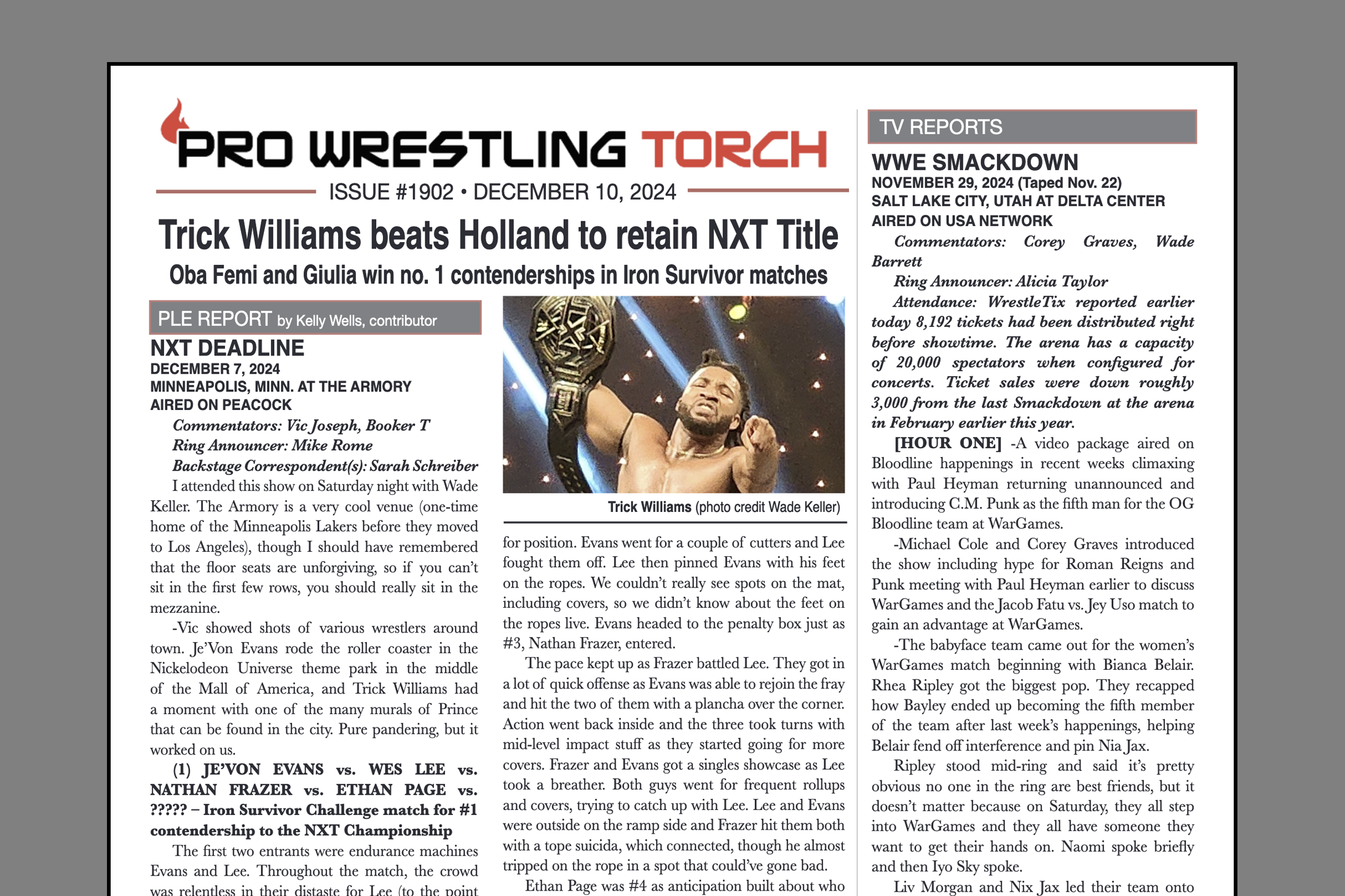 SUMMARY: This week’s PWTorch Newsletter features Kelly Wells’s NXT Deadline report… Keller’s TV reports… Two Greg Parks columns including a look at pending free agents in 2024 and why WarGames is losing its lustre… Torch Newswire… More…