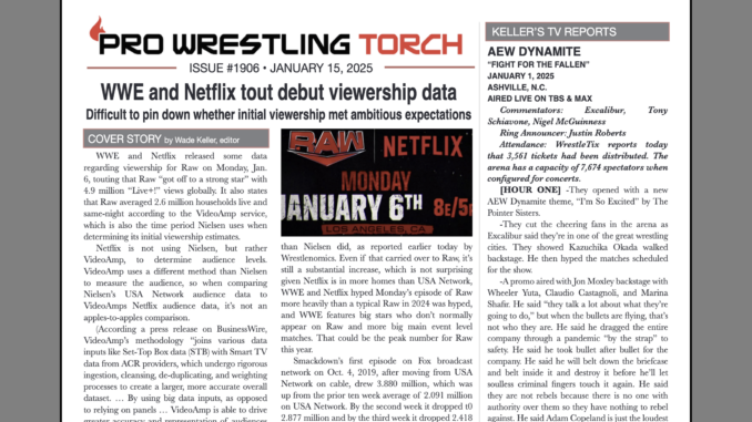 SUMMARY: This week’s PWTorch Newsletter features Wade Keller’s cover story on the first week’s viewership data for WWE Raw on Netflix… Greg Parks feature column on C.M. Punk’s first year back in WWE… Torch Newswire… Keller’s TV Reports including the second Raw on Netflix… More…