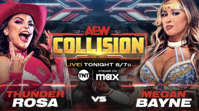 Last week, AEW decided to forgo Collision’s theme song, and as an Elton John fan (a requirement of being simultaneously white and gay), I was disappointed. But tonight, I was reappointed and humming the words, “It’s (8 p.m. EST), and I want to rock…”