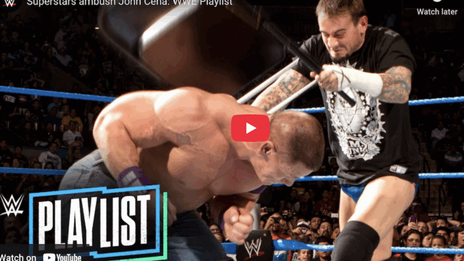 Along the way, primarily as a defending babyface, his opponents have a lot of ways of trying to weaken him in time for the title defense. Sometimes, things get done face to face. But other times, he has been attacked by surprise. The WWE YouTube channel has uploaded another WWE Playlist, this time featuring some of the many times that Cena has been ambushed throughout his career. At nearly a half an hour runtime, it’s clear that WWE has booked Cena being ambushed many times over the years.