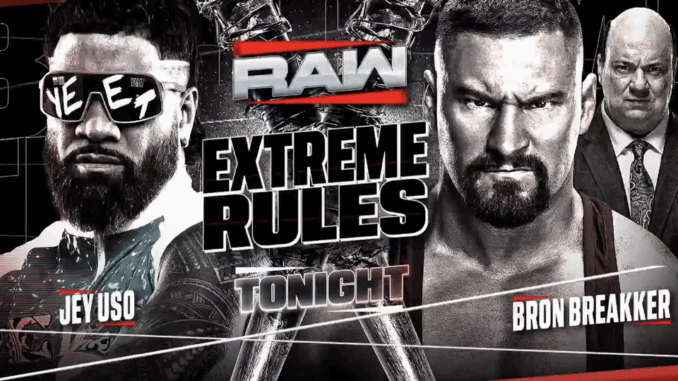 Last week, Jey Uso came out to help C.M. Punk & LA Knight as they were being attacked by World Heavyweight Champion Seth Rollins and The Vision. Immediately after, Adam Pearce came out to announce that Rollins will defend his title at Clash in Paris against Punk, Knight, and Jey Uso in a Fatal Four Way. Over the weekend, it was announced that Jey would face Bron Breakker of The Vision on Raw this week. As Rollins and The Vision opened this week’s show, they were interrupted by Jey. Paul Heyman proposed that the match later in the night between Jey and Breakker be an Extreme Rules match, and Jey agreed to it.