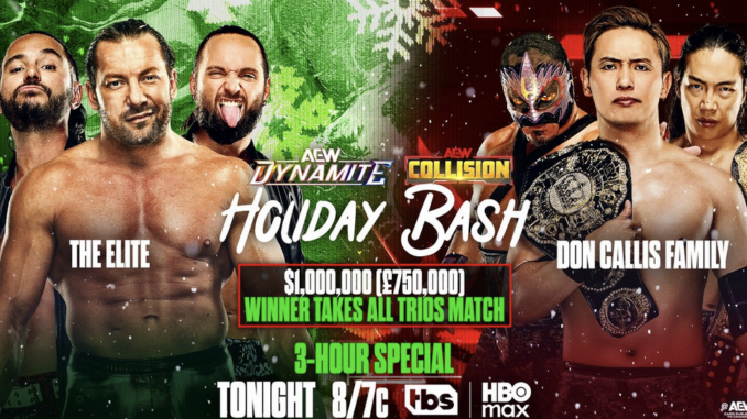 Tonight AEW puts on their Holiday Bash live from Manchester, England. In addition to the Continental Classic continuing there’s an 8-woman tag and trios match for a cool million dollars as well the return of the Dynamite Dozen Battle Royal. So let’s gather together and unwrap the presents AEW has for us.