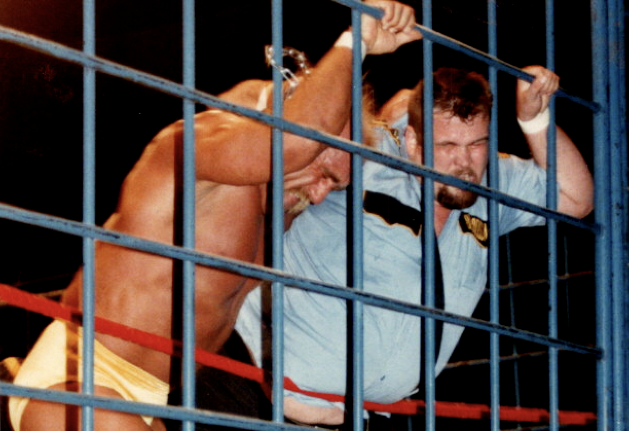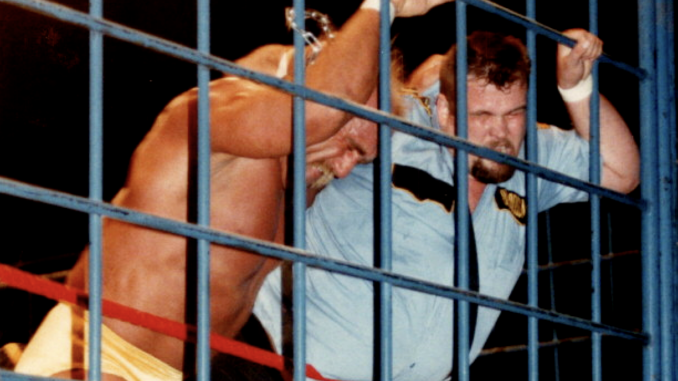 A cage is, in theory, able to contain those two men until a winner is clear, and keep other distractors or weapons out. With open tops on cages, and padlocks that won’t stay locked, a lot more interference happens than advertised, but still a reason it is the ultimate in one on one matches.