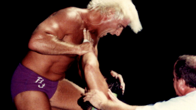 Woman threw her shoe to Flair, but Savage caught it and nailed Flair. Savage covered Flair, but he kicked out. Meanwhile, as Hogan beat on Sullivan at ringside, Anderson DDT’d Savage. Flair then draped his arm over Savage for the win. Afterward, Sullivan, Anderson, and Flair attacked Hogan. The Boodieman (a/k/a Brutus Beefcake, Zodiac) made the save and fired up the crowd…