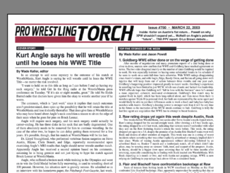 SUMMARY of #750 cover-dated March 22, 2003: This issue features a cover story on Kurt Angle saying he will wrestle until he loses his WWE Title… Part four of the Torch Talk with Justin Credible… […]