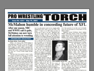 SUMMARY of #654 cover-dated May 19, 2001: This issue begins with a cover story Vince McMahon’s press conference conceding the failure of the XFL… Wade Keller’s BBL feature editorial asserts that Mick Foley fails to […]