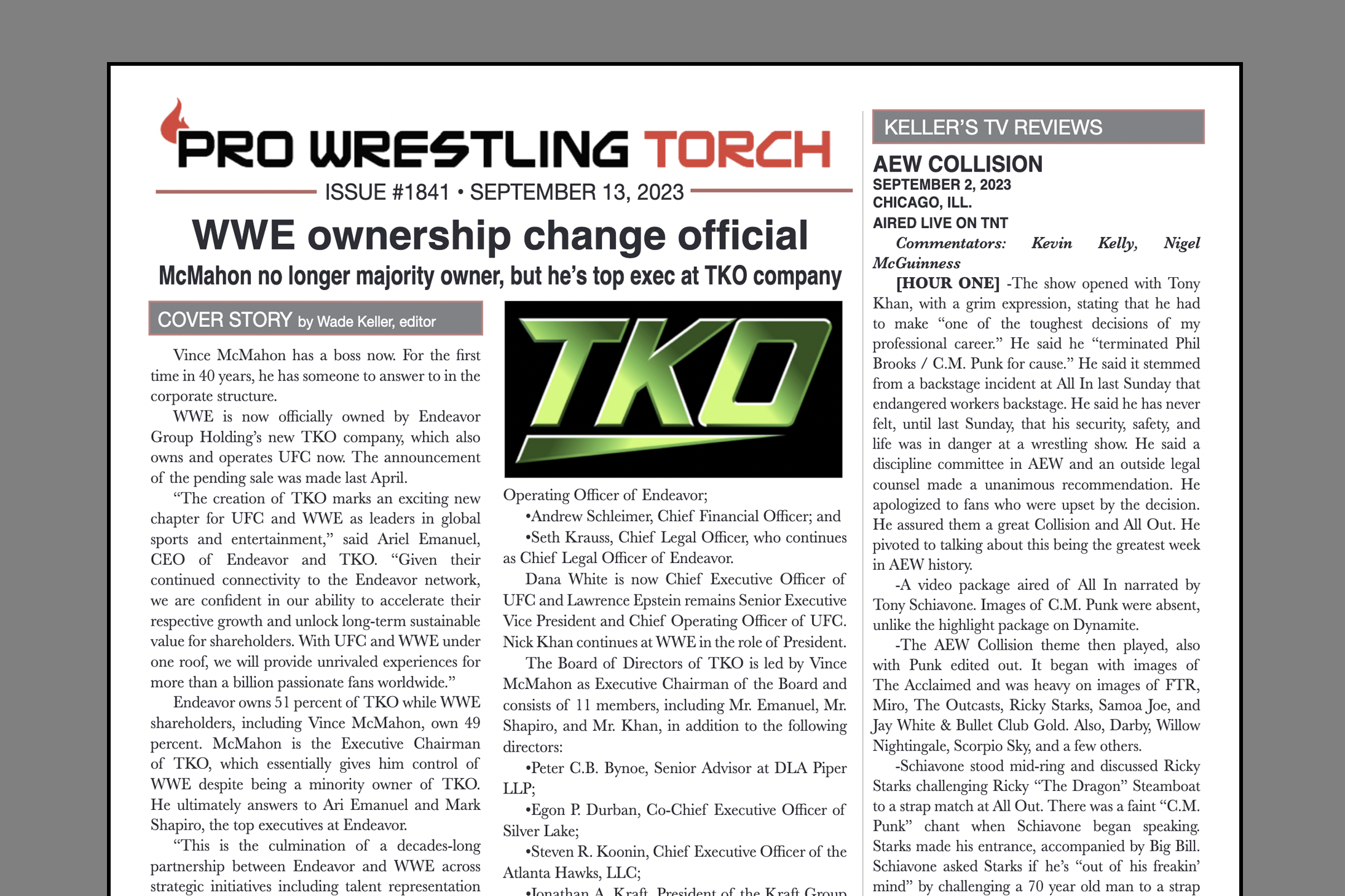 The newsletter also features Wade’s in-depth coverage of the major weekly TV shows including WWE Raw, AEW Dynamite, WWE Smackdown, and AEW Collision with added analysis of key matches and segments. Plus, the Torch Newswire with the latest news including exclusive insider tidbits and expanded analysis.