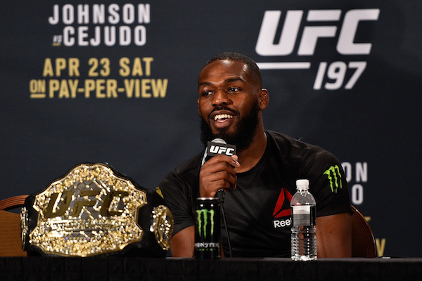 "LAS VEGAS, NV - APRIL 23: Jon Jones interacts with the media during the UFC 197 news conference at the MGM Grand Garden Arena on April 23, 2016 in Las Vegas, Nevada. (Photo by Jeff Bottari/Zuffa LLC/Zuffa LLC via Getty Images)"